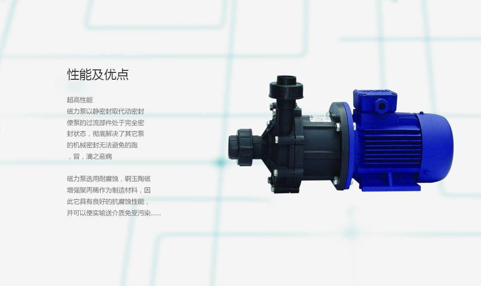 磁力泵輸送介質(zhì)的密度不大于1300kg/m3,粘度不大于30×10-6m3/S的不含鐵磁性和纖維的液體。常規(guī)磁力泵的額定溫度對(duì)于泵體為金屬材質(zhì)或 F46襯里,Z高工作溫度為80℃,額定壓力為1.6MPa;高溫磁力泵的使用溫度≤350℃;對(duì)于泵體為非金屬材質(zhì),Z高溫度不超過60℃,額定壓力為 0.6MPa。對(duì)于輸送介質(zhì)密度大于1600kg/m3的液體,磁性聯(lián)軸器需另行設(shè)計(jì)。磁力泵的軸承采用被輸送的介質(zhì)進(jìn)行潤(rùn)滑冷卻,鼓磁力泵嚴(yán)禁空載運(yùn) 行。