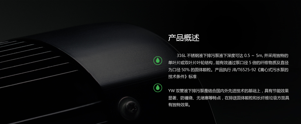 6、液下排污泵為立式結構,工作時泵體浸在液體中因而容易啟動,不存在排氣抽空問題,同時具有無泄露等特點,液下深度可達0.5-7米。