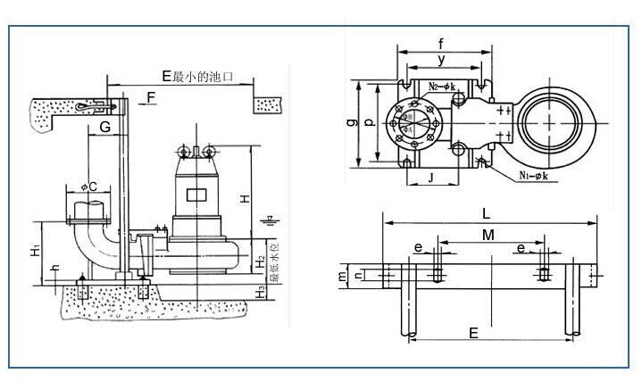 將出水管固定在污水池的底部,在池頂安裝配套的支撐件,用雙內(nèi)導(dǎo)軌使泵的出口與出水管自動對正。獨特設(shè)計的出口連接確保了在泵和底座之間的連接處絕無泄漏。此安裝方式可避免檢修時工作人員進(jìn)入污水池,既保護(hù)了環(huán)境,又降低了維修成本與工人強(qiáng)度。